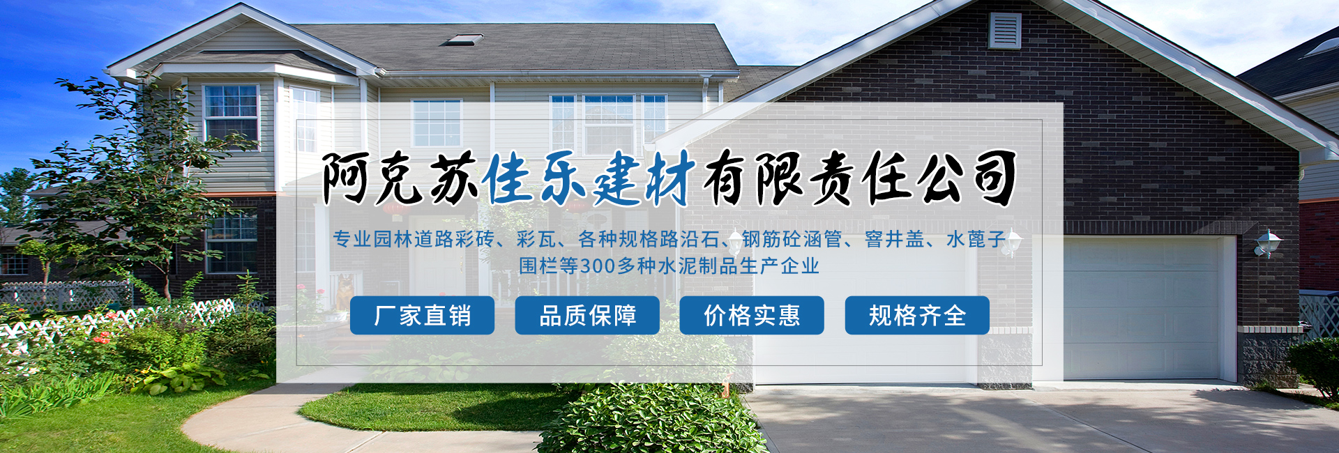 阿克蘇佳樂建材有限責任公司成立于2005年,是園林道路彩磚、彩瓦、各種規(guī)格路沿石、鋼筋砼涵管、窨井蓋、水蓖子、圍欄等300多種水泥制品生產(chǎn)企業(yè)。阿克蘇佳樂建材有限責任公司位于阿克蘇市塔南路13號(石油公司往南200米)。現(xiàn)公司在阿克蘇市、阿瓦提縣、烏什縣、拜城縣、輪臺縣、焉耆縣等地有分廠十余個,為地方城鄉(xiāng)建設添磚加瓦。 多年來,公司致力于設備的更新,新產(chǎn)品的研制,用更科學更美觀的產(chǎn)品順應...